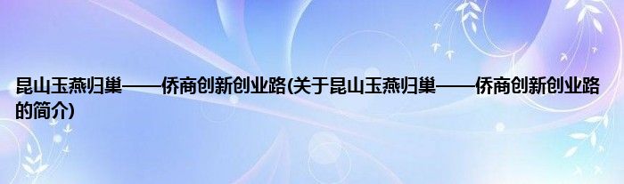 本文关于昆山玉燕归巢——侨商创新创业路的简介就讲解完毕,希望对大家有所帮助。