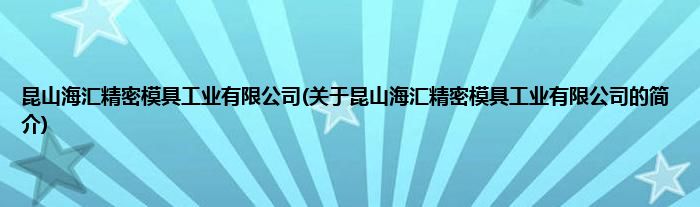 本文关于昆山海汇精密模具工业有限公司的简介就讲解完毕,希望对大家有所帮助。
