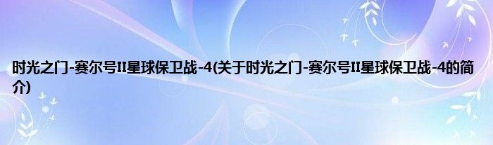 本文关于时光之门-赛尔号II星球保卫战-4的简介就讲解完毕,希望对大家有所帮助。