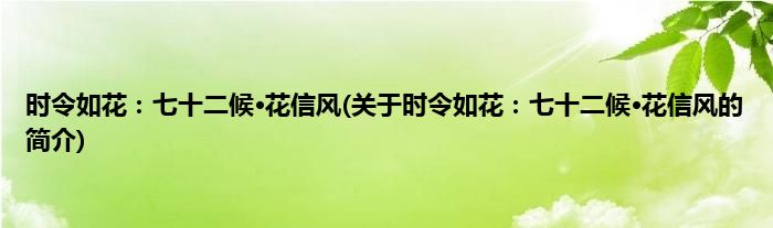 本文关于时令如花:七十二候·花信风的简介就讲解完毕,希望对大家有所帮助。