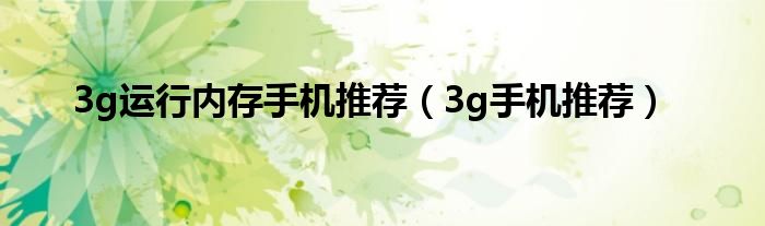 以上就是【3g运行内存手机推荐,3g手机推荐】相关内容。