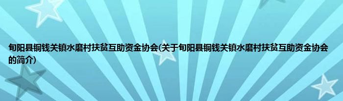 本文关于旬阳县铜钱关镇水磨村扶贫互助资金协会的简介就讲解完毕,希望对大家有所帮助。