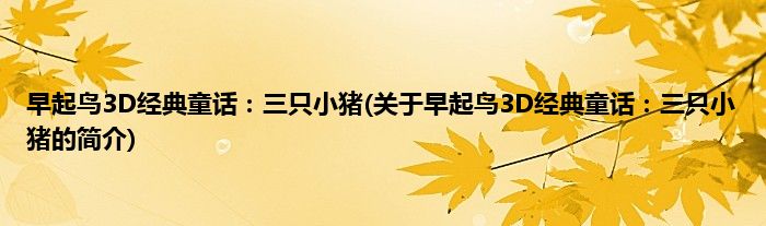 大家好,早起鸟3D经典童话:三只小猪,关于早起鸟3D经典童话:三只小猪的简介很多人还不知道,现在让我们一起来看看吧!