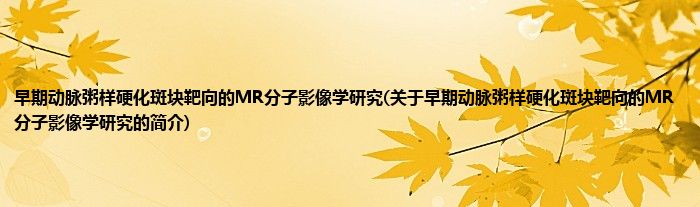 本文关于早期动脉粥样硬化斑块靶向的MR分子影像学研究的简介就讲解完毕,希望对大家有所帮助。