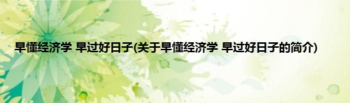 本文关于早懂经济学,早过好日子的简介就讲解完毕,希望对大家有所帮助。