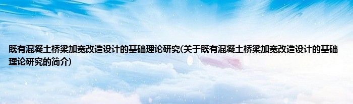 大家好,既有混凝土桥梁加宽改造设计的基础理论研究,关于既有混凝土桥梁加宽改造设计的基础理论研究的简介很多人还不知道,现在让我们一起来看看吧!