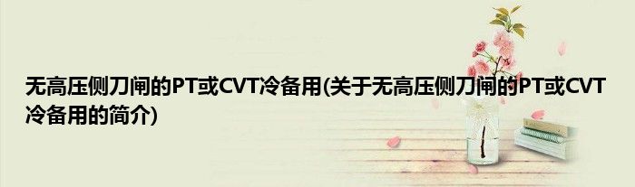 无高压侧刀闸的PT或CVT冷备用(关于无高压侧刀闸的PT或CVT冷备用的简介)