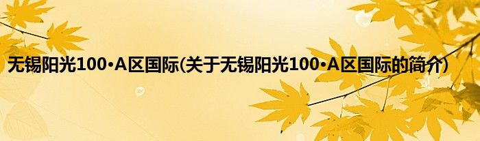 大家好,无锡阳光100·A区国际,关于无锡阳光100·A区国际的简介很多人还不知道,现在让我们一起来看看吧!