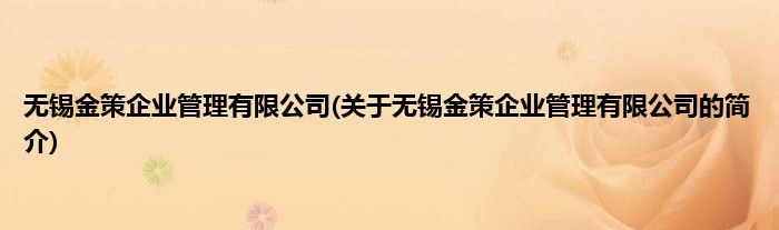 本文关于无锡金策企业管理有限公司的简介就讲解完毕,希望对大家有所帮助。