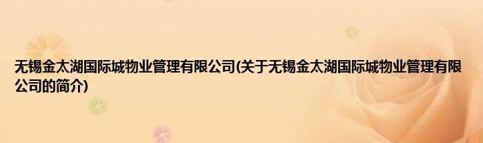 大家好,无锡金太湖国际城物业管理有限公司,关于无锡金太湖国际城物业管理有限公司的简介很多人还不知道,现在让我们一起来看看吧!