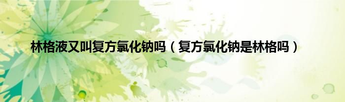 以上就是【林格液又叫复方氯化钠吗,复方氯化钠是林格吗】相关内容。