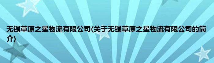 本文关于无锡草原之星物流有限公司的简介就讲解完毕,希望对大家有所帮助。