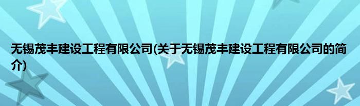 本文关于无锡茂丰建设工程有限公司的简介就讲解完毕,希望对大家有所帮助。