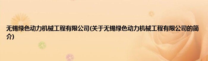 本文关于无锡绿色动力机械工程有限公司的简介就讲解完毕,希望对大家有所帮助。