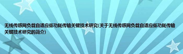 本文关于无线传感网负载自适应低功耗传输关键技术研究的简介就讲解完毕,希望对大家有所帮助。