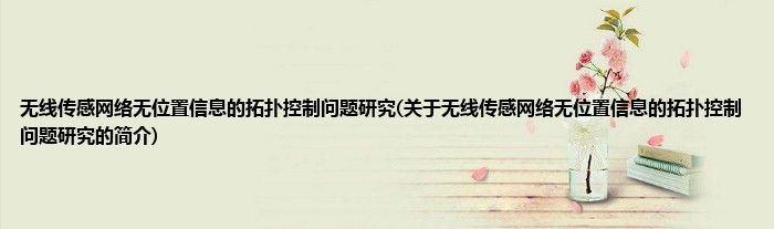大家好,无线传感网络无位置信息的拓扑控制问题研究,关于无线传感网络无位置信息的拓扑控制问题研究的简介很多人还不知道,现在让我们一起来看看吧!