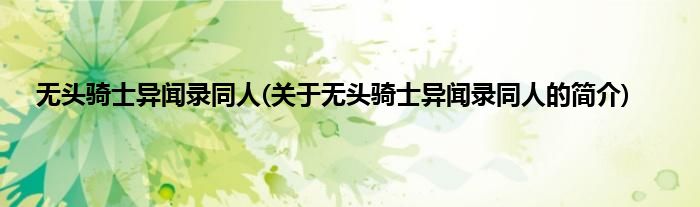 本文关于无头骑士异闻录同人的简介就讲解完毕,希望对大家有所帮助。
