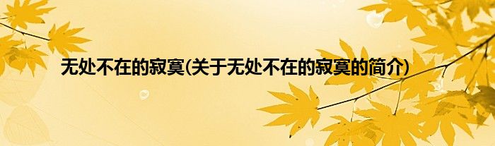 本文关于无处不在的寂寞的简介就讲解完毕,希望对大家有所帮助。