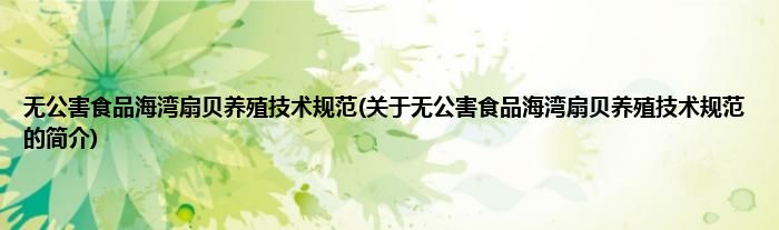 大家好,无公害食品海湾扇贝养殖技术规范,关于无公害食品海湾扇贝养殖技术规范的简介很多人还不知道,现在让我们一起来看看吧!