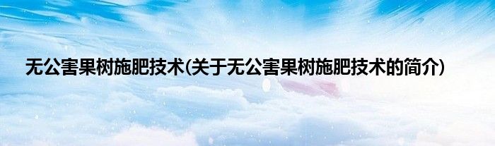 本文关于无公害果树施肥技术的简介就讲解完毕,希望对大家有所帮助。