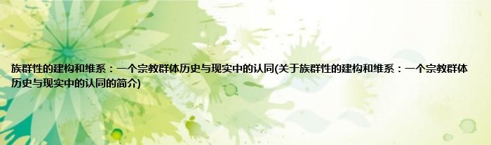 大家好,族群性的建构和维系:一个宗教群体历史与现实中的认同,关于族群性的建构和维系:一个宗教群体历史与现实中的认同的简介很多人还不知道,现在让我们一起来看看吧!