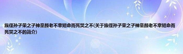 大家好,族侄孙子荣之子神童颜老不幸短命而死哭之不,关于族侄孙子荣之子神童颜老不幸短命而死哭之不的简介很多人还不知道,现在让我们一起来看看吧!