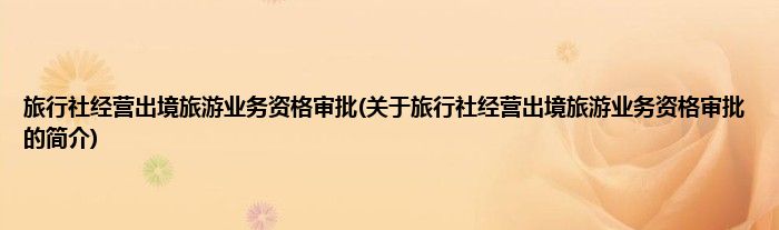 本文关于旅行社经营出境旅游业务资格审批的简介就讲解完毕,希望对大家有所帮助。