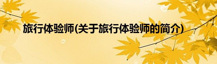 大家好,旅行体验师,关于旅行体验师的简介很多人还不知道,现在让我们一起来看看吧!