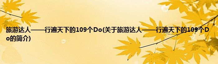 本文关于旅游达人——行遍天下的109个Do的简介就讲解完毕,希望对大家有所帮助。