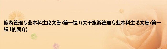 本文关于旅游管理专业本科生论文集·第一辑,I的简介就讲解完毕,希望对大家有所帮助。