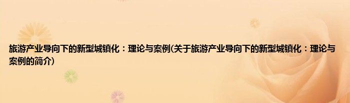 本文关于旅游产业导向下的新型城镇化:理论与案例的简介就讲解完毕,希望对大家有所帮助。