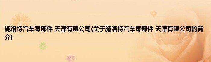 本文关于施洛特汽车零部件 天津有限公司的简介就讲解完毕,希望对大家有所帮助。