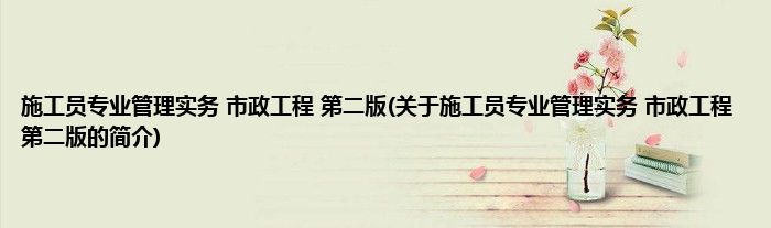 本文关于施工员专业管理实务 市政工程 第二版的简介就讲解完毕,希望对大家有所帮助。
