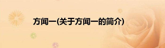 大家好,方闻一,关于方闻一的简介很多人还不知道,现在让我们一起来看看吧!