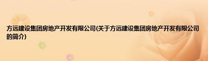 本文关于方远建设集团房地产开发有限公司的简介就讲解完毕,希望对大家有所帮助。