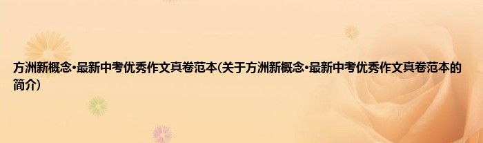 本文关于方洲新概念·最新中考优秀作文真卷范本的简介就讲解完毕,希望对大家有所帮助。