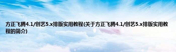 1、 《方正飞腾4.1/创艺5.x排版实用教程》是2010年9月清华大学出版社出版的图书。