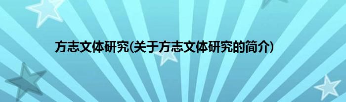 大家好,方志文体研究,关于方志文体研究的简介很多人还不知道,现在让我们一起来看看吧!