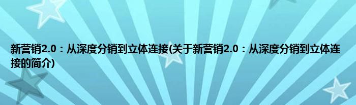 本文关于新营销2.0:从深度分销到立体连接的简介就讲解完毕,希望对大家有所帮助。