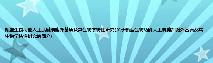 大家好,新型生物功能人工肌腱细胞外基质及其生物学特性研究,关于新型生物功能人工肌腱细胞外基质及其生物学特性研究的简介很多人还不知道,现在让我们一起来看看吧!