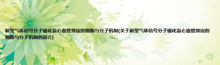 本文关于新型气体信号分子硫化氢心血管效应的细胞与分子机制的简介就讲解完毕,希望对大家有所帮助。
