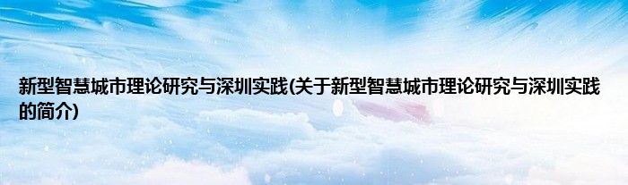 本文关于新型智慧城市理论研究与深圳实践的简介就讲解完毕,希望对大家有所帮助。