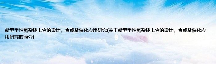 新型手性氮杂环卡宾的设计、合成及催化应用研究(关于新型手性氮杂环卡宾的设计、合成及催化应用研究的简介)