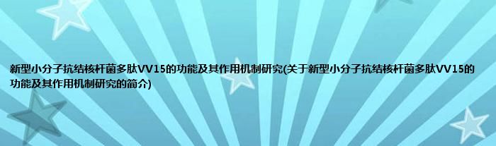 新型小分子抗结核杆菌多肽VV15的功能及其作用机制研究(关于新型小分子抗结核杆菌多肽VV15的功能及其作用机制研究的简介)