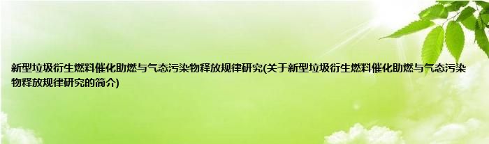 本文关于新型垃圾衍生燃料催化助燃与气态污染物释放规律研究的简介就讲解完毕,希望对大家有所帮助。