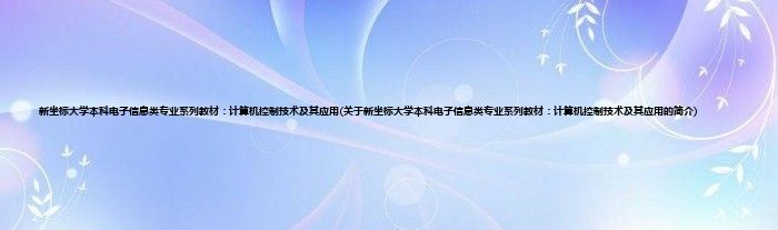 本文关于新坐标大学本科电子信息类专业系列教材:计算机控制技术及其应用的简介就讲解完毕,希望对大家有所帮助。
