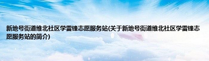 大家好,新地号街道维北社区学雷锋志愿服务站,关于新地号街道维北社区学雷锋志愿服务站的简介很多人还不知道,现在让我们一起来看看吧!