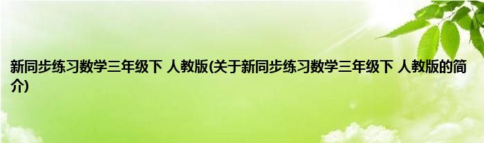 本文关于新同步练习数学三年级下 人教版的简介就讲解完毕,希望对大家有所帮助。