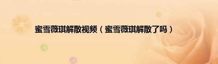 以上就是【蜜雪薇琪解散视频,蜜雪薇琪解散了吗】相关内容。