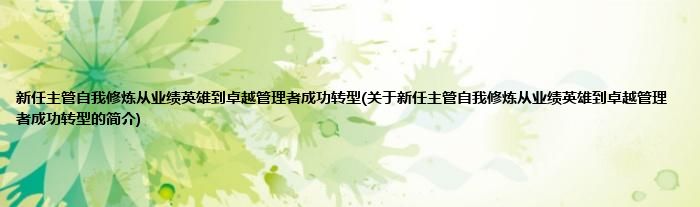 本文关于新任主管自我修炼从业绩英雄到卓越管理者成功转型的简介就讲解完毕,希望对大家有所帮助。